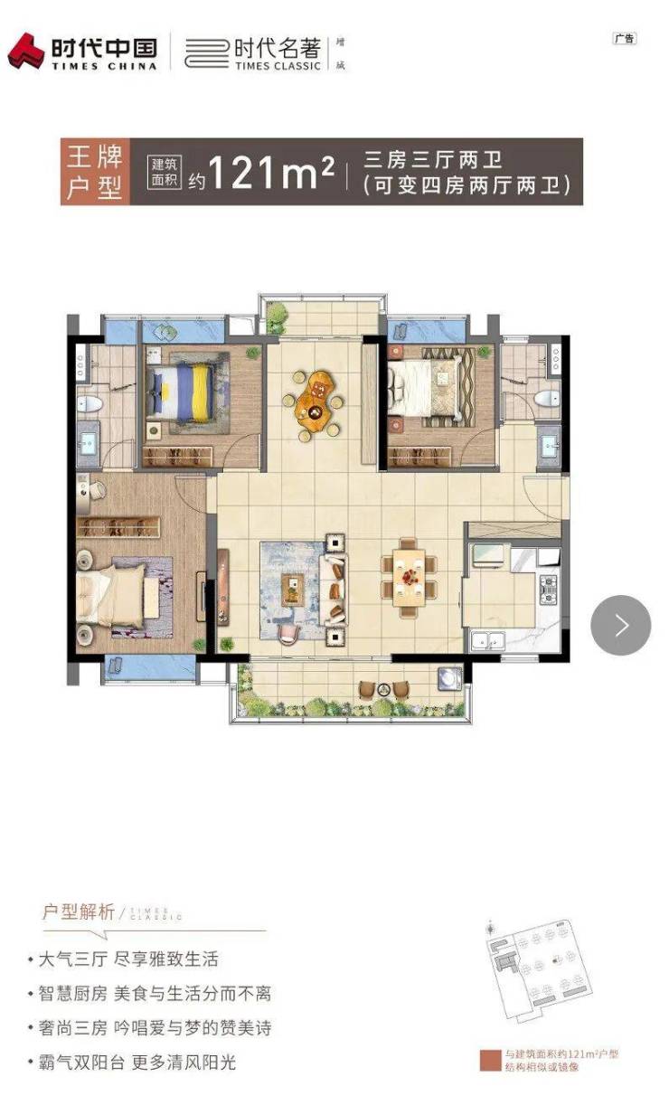 产品:建面约 83|100|106|121㎡三至四房(可改)