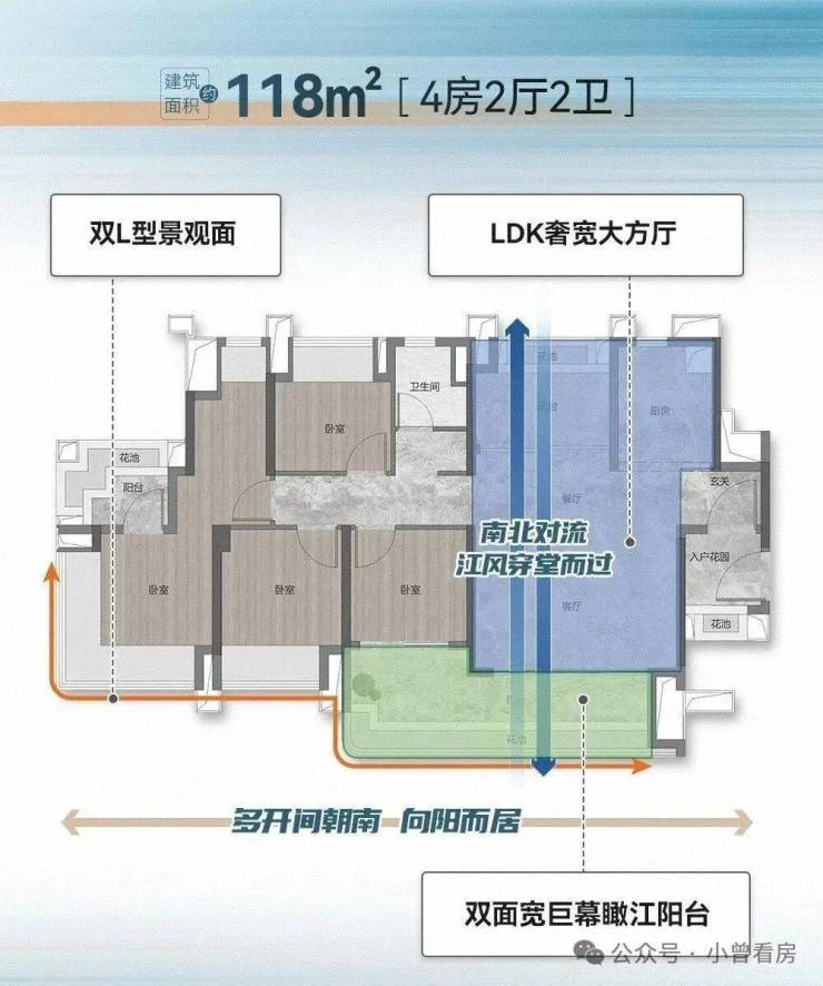 项目共规划4栋住宅楼,均为37层,分高低区设计,而且梯户比跟户型都各不相同: