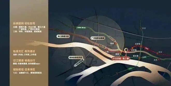 【潜力足】规划建设临江大道东延线、鱼珠隧道、沙鱼洲隧道、金融城广场综合枢纽中心、黄埔高铁站系列交通配套,构建黄金十字轴线