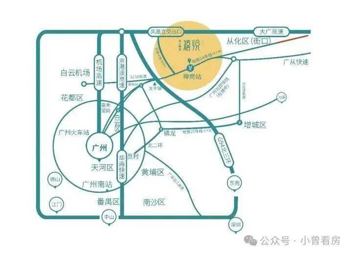 凤凰立交——家门口的高速路口,距离项目约2公里,半小时通勤广州天河商务区,1小时贯穿粤港澳大湾区各大城市城区;
