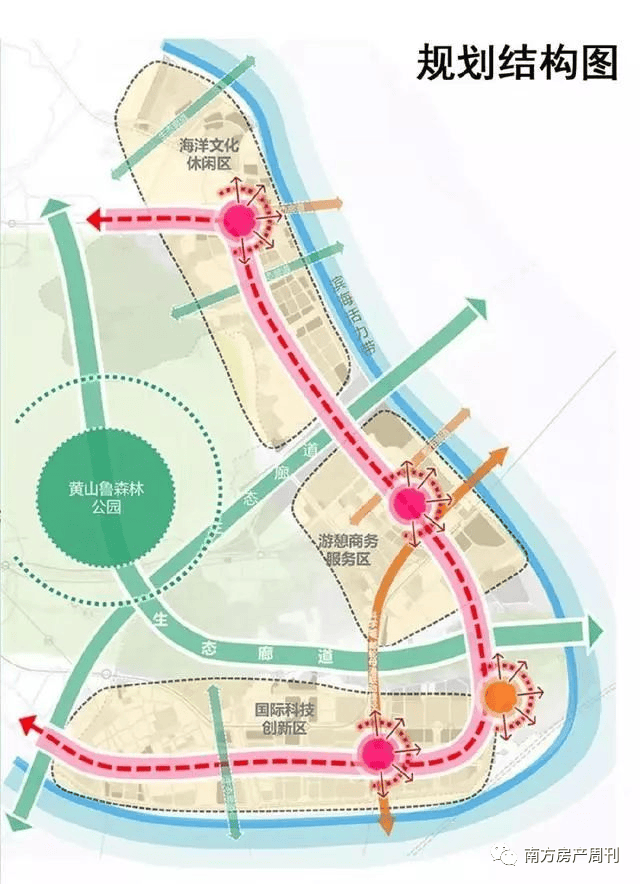 “两带”:串联南沙岛的风情大道,展示富有形象魅力的滨海活力带