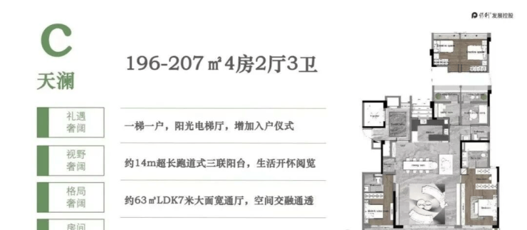 2、产品户型设计不错。不论是120方还是200方的产品,户型方正,利用率高。不论是大阳台还是大客厅,都是可圈可点。