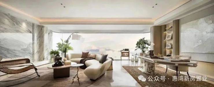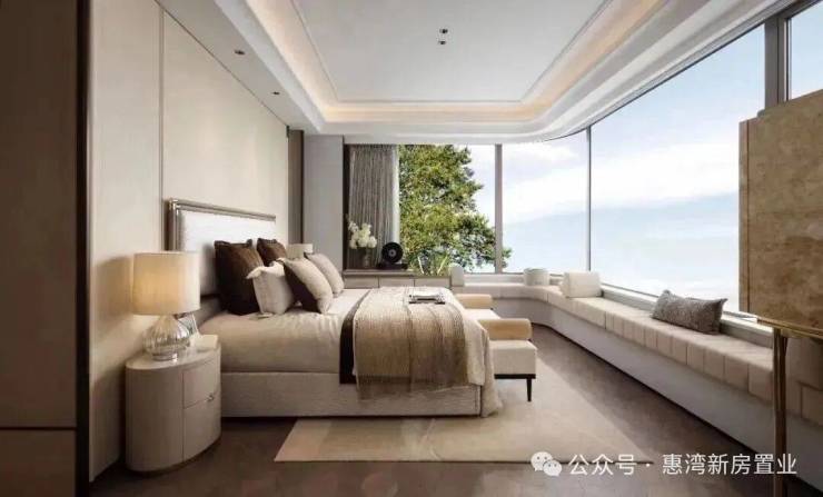 项目最大户型,它被琶洲CBD天际线、滨河公园沉浸式包围,高楼层单位可享双江同框环幕景观。