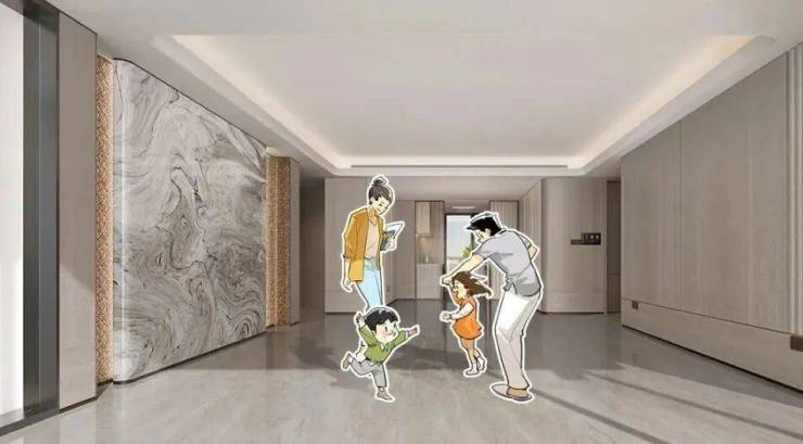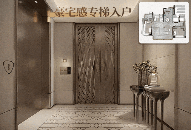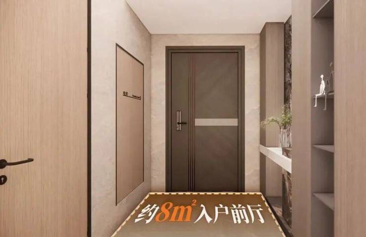 打开专梯,入户前厅更是达到约8㎡!相当于一个次卧的尺度。