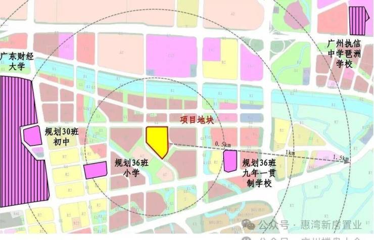 3、国际校圈:500米左右范围处规划一所36班小学、一所36班九年一贯制学校+国际私立+广东财经大学