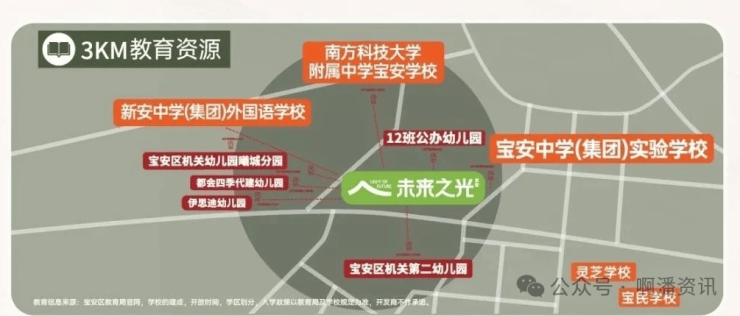 项目内配建优质幼儿园,周边三公里半径内名校云集,犹如璀璨星河般点缀着这片教育沃土——南方科技大学附属中学宝安学校(在建中)、宝安中学(集团)实验学校、新安中学(集团)外国语学校、曦城协同学校等优质学府比邻而居。其中,宝安中学(集团)实验学校作为区域教育标杆宝安中学集团的重要分支,自2018年创办以来便以稳健的教学品质稳居深圳教育第二梯队前列,犹如一位经验丰富的教育守望者,为学子们提供坚实的学业保障。而即将在今年9月揭开面纱的南方科技大学附属中学宝安学校,其背后依托双一流大学的雄厚底蕴,恰似一株蓄势待发的教育新苗,正孕育着令人期待的教学硕果。