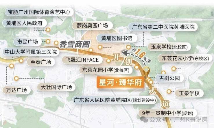 星河臻华府位于科学城香雪片区,主干道开源大道上,是科学城比较成熟的片区。