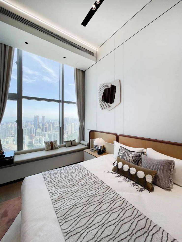 约4.5 米挑空层高 + 约 10 米巨幕大厅+约5m宽观景阳台,定义空中墅尺度标准;270° 大国观景台,桂湾摩天集群、前海湾帆影、深圳湾海景、大南山翠意一窗尽揽,私藏自然与城市的顶级景观资源。