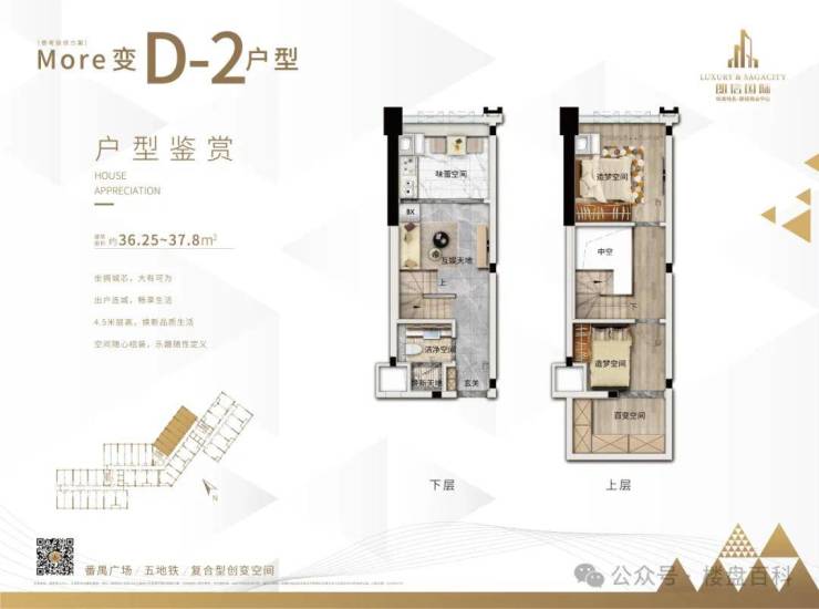 朗信国际主推建面约30-75m²的精装产权复式,挑高4.5米,买一层享两层。而且空间灵活百变,可居住、可办公,满足年轻精英的的多样需求,性价比超高,明火公寓,全城罕见。