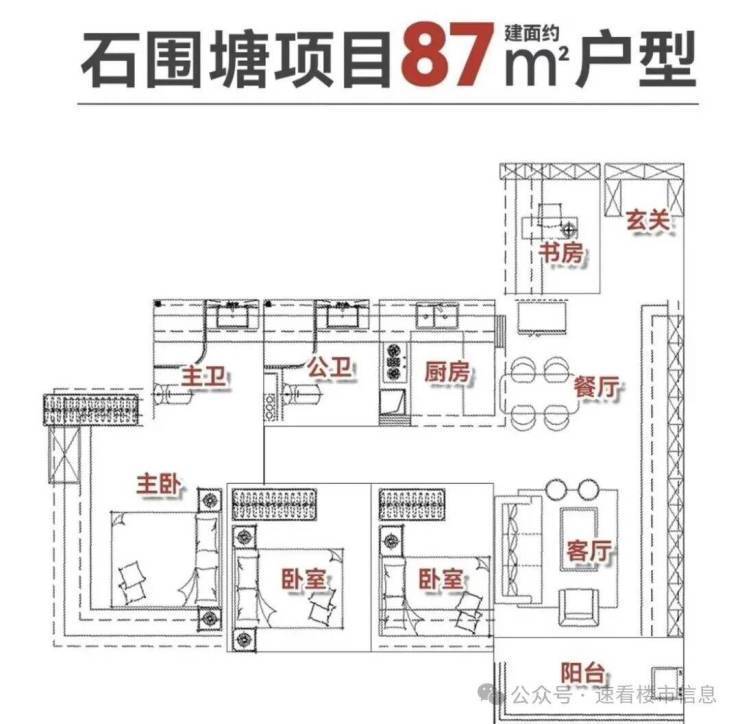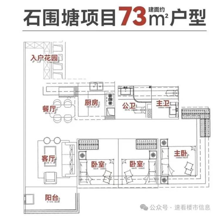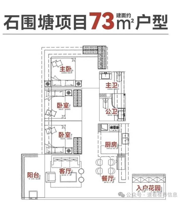 项目户型将主打建面约73㎡三房、87㎡四房以及106㎡四房。精准切中当前市场对“小而精”产品的强烈需求。