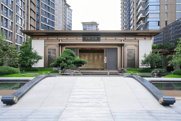园林面积约6.8万㎡,中式风格。我实地走下来的感受是:很多树是全冠移植的,入住就能有比较好的绿荫效果。龙鳞景墙、万字纹铜门、曲径水系这些细节,做工对得起价格。