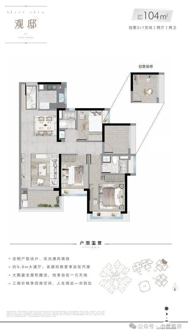 3. 户型详情:各户型建筑面积、套内面积、得房率精准数值,户型设计亮点及空间布局细节;