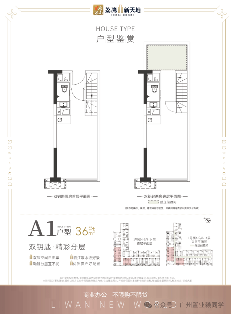 4.5米复式挑高,买一层用两层,高赠送高拓展空间!部分可明火、带阳台、全明房!投资租赁、自用自营、创业办公等,一套全能!