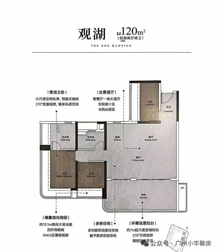 · 约30㎡ 奢阔主卧套房,270°全景飘窗