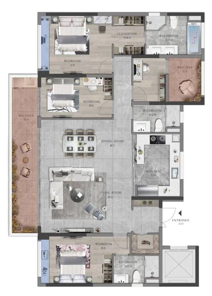 • A+健康居住家:配置景观大阳台、U型大厨房、贴心大玄关、品质系统门窗、中央空调、智能生活,居住更舒心