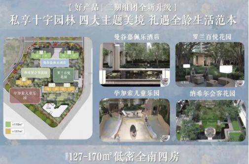 项目二期推出建面约 127㎡和 170㎡两种主力户型,均为全南向板楼设计,楼间距近 50 米,确保充足采光与通风。全系采用南北对流双阳台设计,实现生活与家政功能分离,南向主阳台可作为观景空间,享受开阔视野。