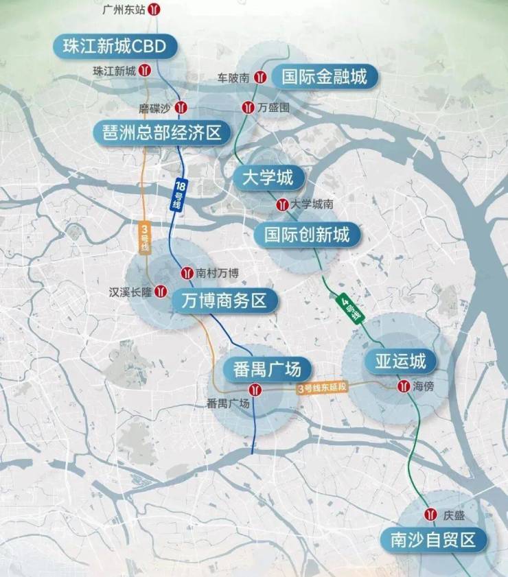 目前板块内有已经开通的4号线和3号线,在这里6站可达琶洲,7站天河,从家门口乘坐3号线4个站到番禺广场,6个站到长隆万博,11个站到海珠客村,可换乘8号线到琶洲,13个站到珠江新城,基本1小时内能到达各CBD中心。
