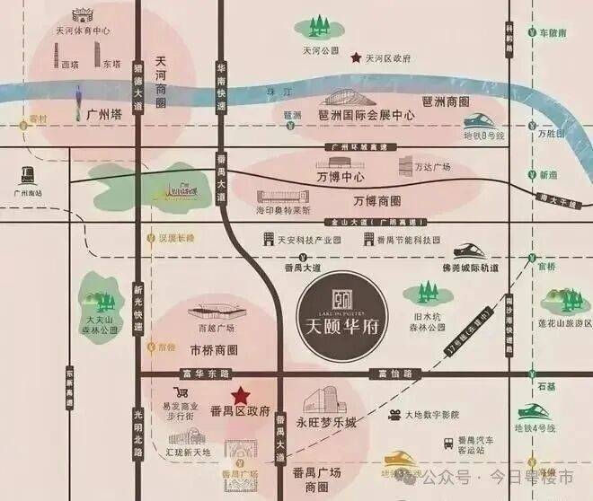 ① 地处番禺广场板块,四地铁交汇的广州枢纽级交通中心(3 号线、18 号线、22 号线、17 号线)