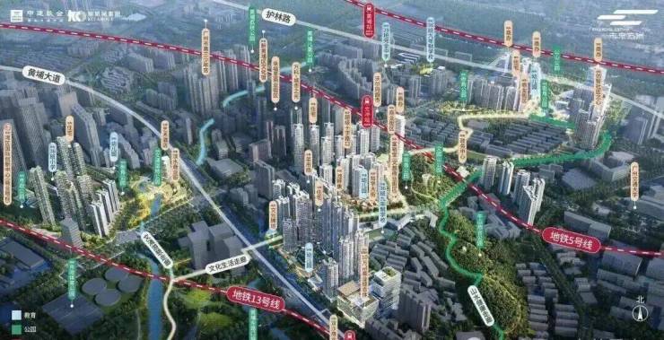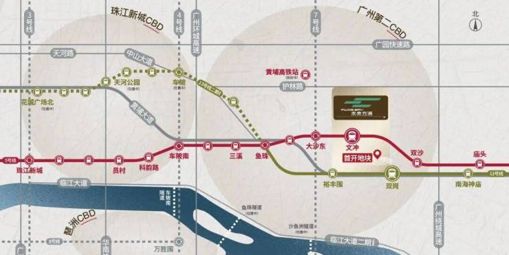 双黄金地铁线:5号线文冲站及13号线双岗站,3站金融城,6站琶洲,9站不换乘直达珠江新城板块
