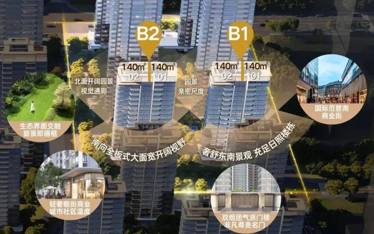放眼整个珠金琶,这种王牌户型与王牌形态的完美组合——约140平低密小高层,只有这两栋,这60套。