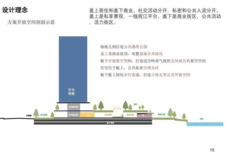 通过盖板设计造就的盖上私密园林、盖下滨江商业带,叠加270°环幕滨江会所和公共港湾公园,真的很city了。