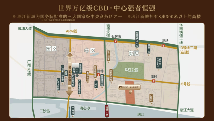 珠江新城为国务院批准的三大国家级中央商务区之一(另外两个为北京CBD与上海陆家嘴CBD);