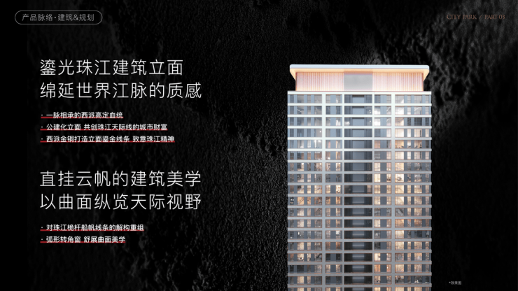 西派粤府采用围合式布局,前后有高度错位,能保障大部分户型能够看到旁边的江景。