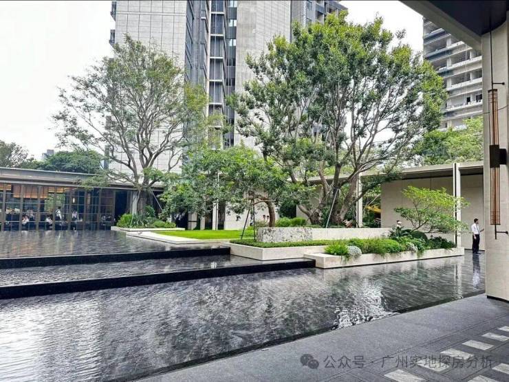 项目规划约7.2万㎡超级中央园林,约600米双层立体花园街区,吸收岭南骑楼&新加坡立体花园理念,融入了几何金属穹顶,形成让业主无阻归家的风雨连廊。以高奢酒店会所标准打造的架空层也已呈现,让健身、酒廊、待客甚至宴会需求都可以在家楼下满足,并且未来还会打造两个独立会所,进入中心水院,在边界嵌入下沉式会客区,三侧被水景包围。