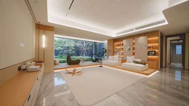 “去客厅化”设计摒弃了传统的电视+沙发布局,而是将公区作为更开放的起居、社交空间,可以根据需求,随时调整使用场景。