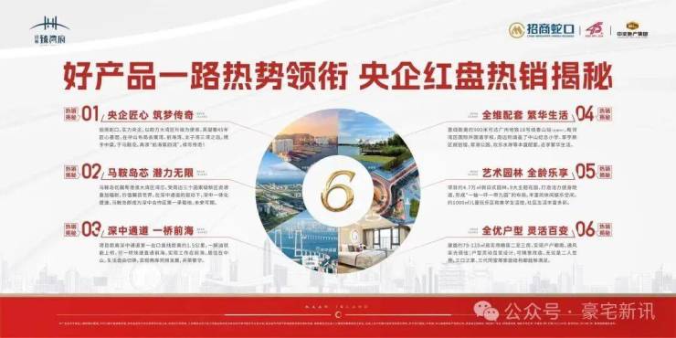 招商蛇口,百年招商局旗下实力央企,从“改革开放排头兵”到“美好生活承载者”,口碑卓著,以助力大湾区升级为使命。秉承招商血统,凝聚45年蛇口基因,深度参与城市共建,布局156城;在中山布局招商会展湾、前海湾、太子湾三湾之后,携手中梁控股集团,于翠亨新区马鞍岛,再添“招商前海第四湾”,续写传奇!