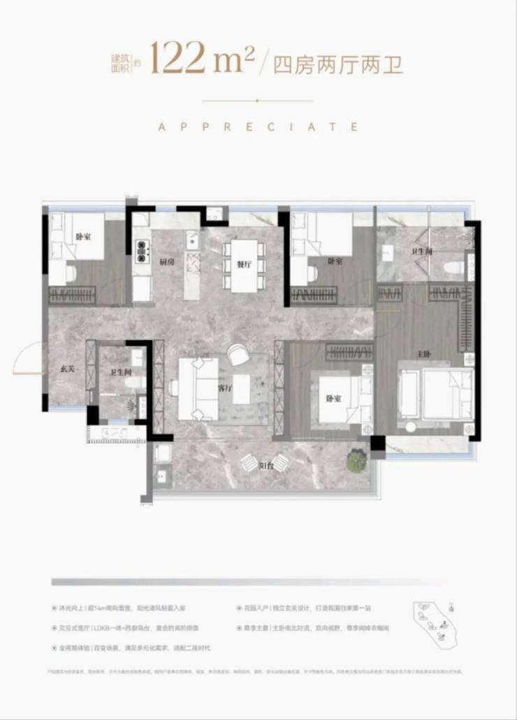 建面约122-186㎡南向阔景四房