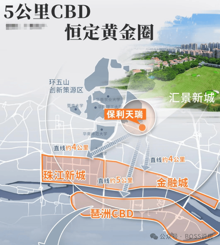 保利天瑞坐落天河五山汇景新城板块,扼守珠江新城和琶洲金融城两大经济轴心之间,自驾到珠江新城16分钟、金融城7分钟、琶洲8分钟,直线距离均在5公里黄金圈内,妥妥的CBD后花园。