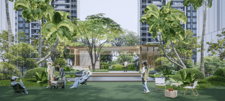 再从小区景观上,打造集邻里社交、植物认知、游憩休闲、社区活动于一体的共享林下休闲平台。