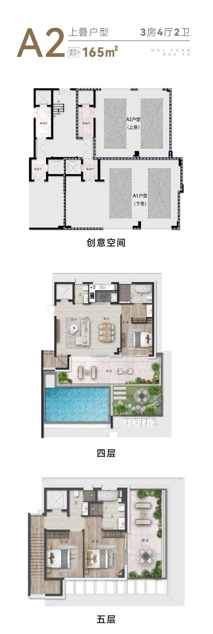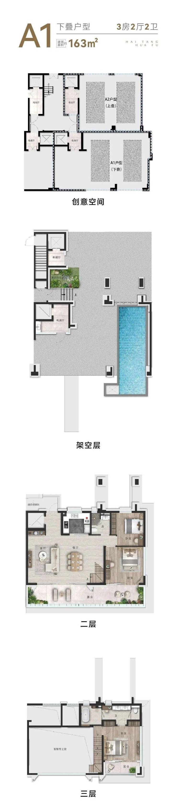 低密栖海叠拼:上叠建面165㎡,下叠建面163㎡