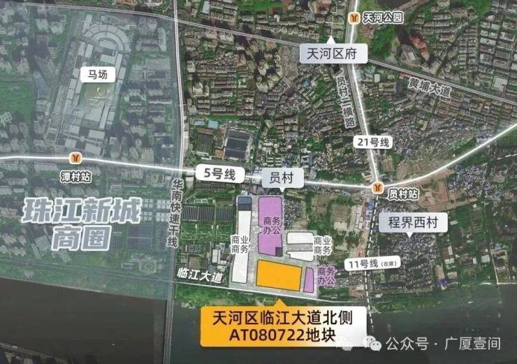 地块位于金融城西区,西面是珠城东豪宅区,旁边就是广州顶豪汇悦台,一江之隔是广交会展馆、琶洲CBD,附近有马场、员村地铁站。南向一线江景,宅地距江边仅150米。