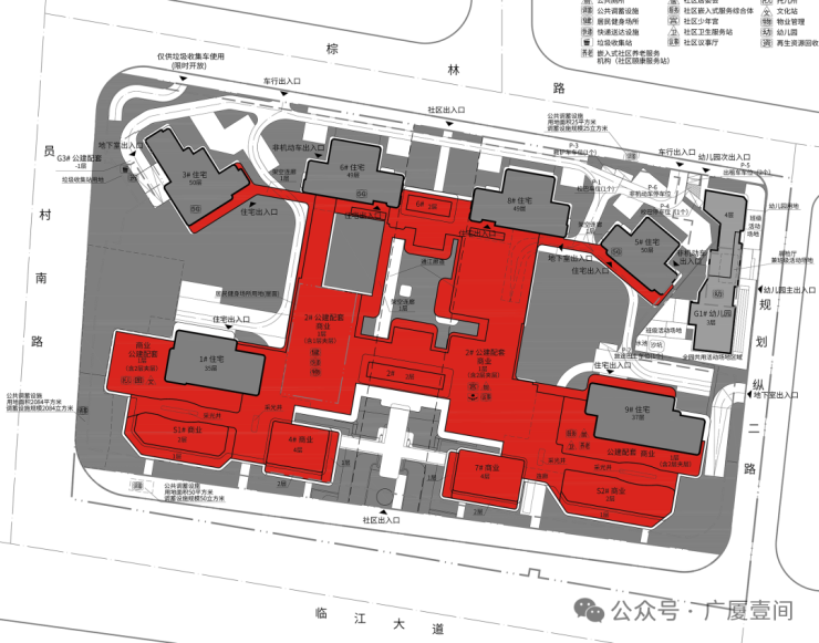 配建巨量底商(红色部分),未来极有可能打造成为会所,顶部承担屋顶花园功能。与其他项目不同的地方在于,其他项目会所往往环绕住宅分布,保利面粉厂项目的会所则渗透全盘。