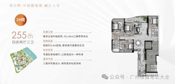 户型:建面约233-285㎡四至五房,约255㎡东南向一线阅江新品加推。极致3.4-3.6m层高,14-40层高层、超高层