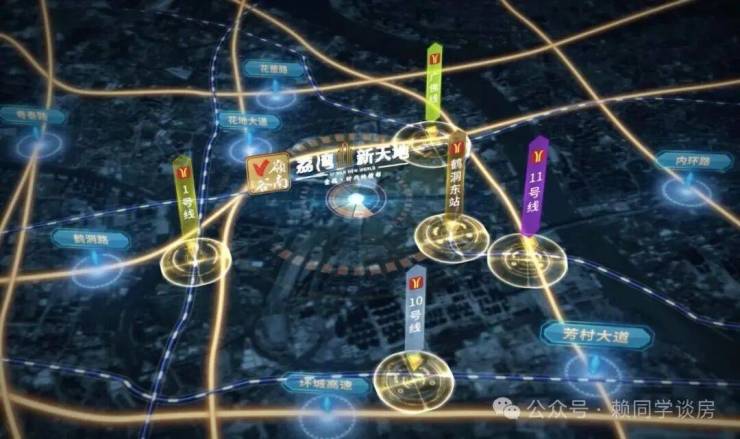 350米广州超级内环枢纽线—11号线鹤洞东站,1号/10号/11号/广佛线四地铁环绕,芳村大道、鹤洞路、环城高速、东新高速无缝串联,15分钟广州南站,20分钟珠江新城。