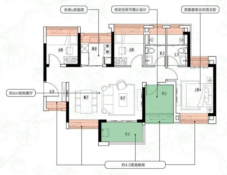 建面约84㎡3空间2厅2卫|得房率约93.5%