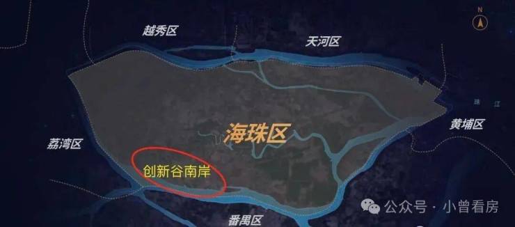 剩下来还能入得上New money法眼的,恐怕只有中大创新谷了,确切的说,是创新谷南岸沿江的数公里,如下图所示↓