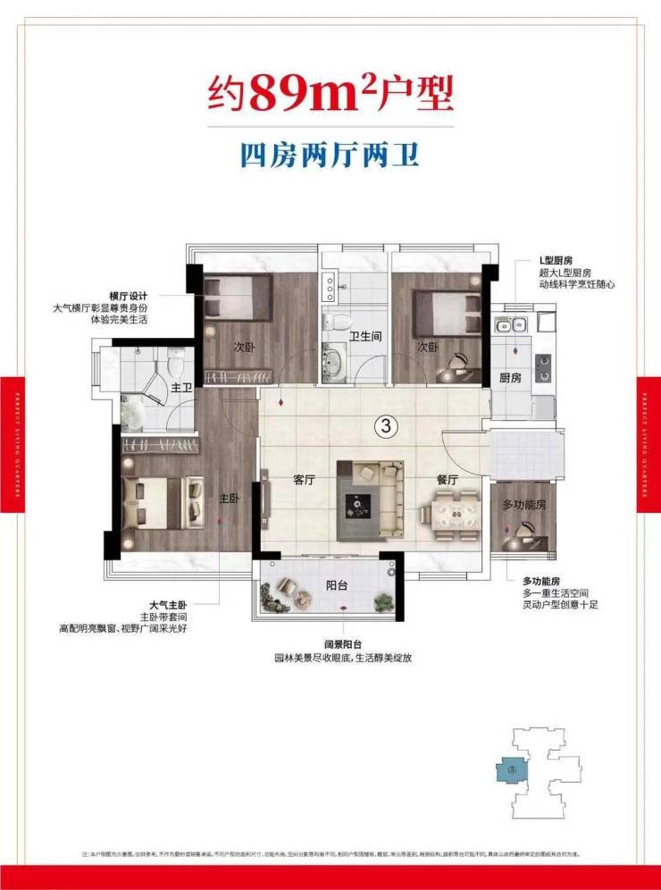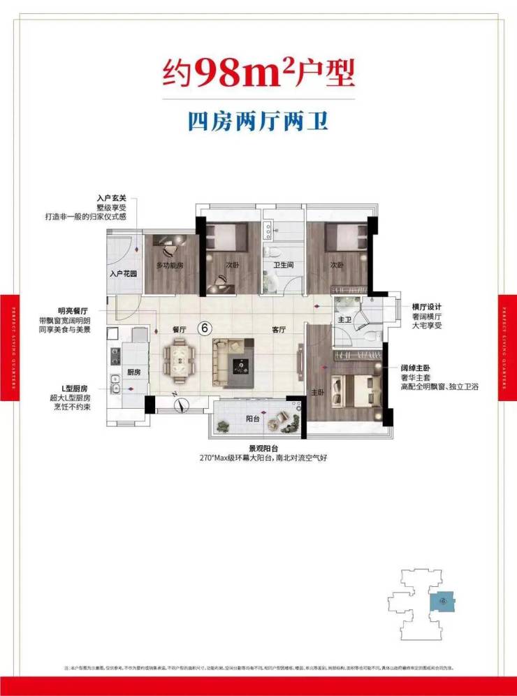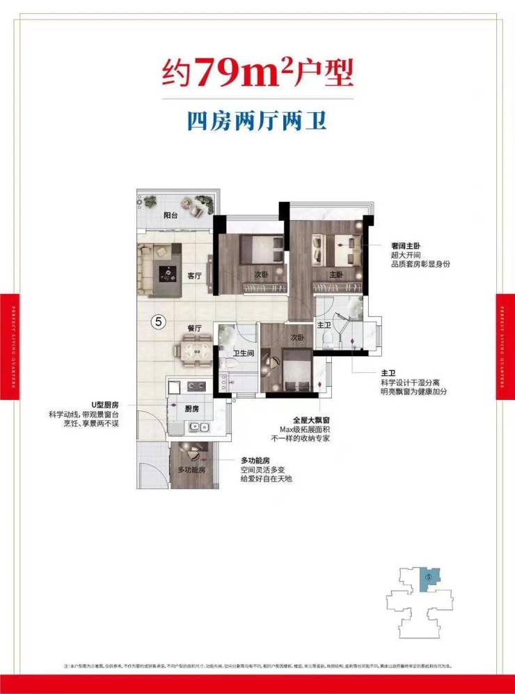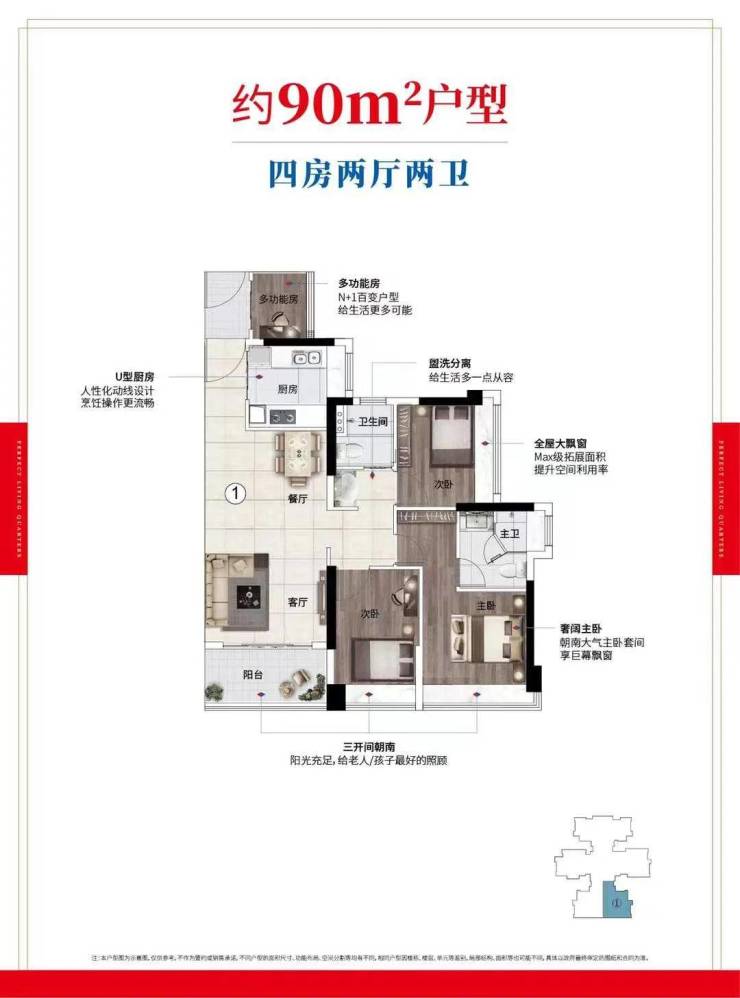 【在售户型】珠江·花屿花城全系带主套4房,同等面积每户多一房一卫。采用N+1花城系产品打造理念,匠造79-98㎡区域内唯一的户户带主套四房产品,接近9成的超高实用率。