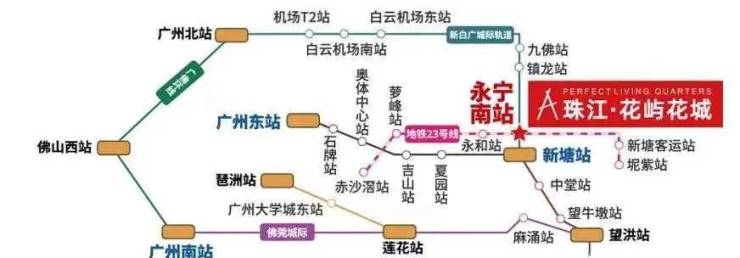 项目步行约900米即达新白广城轨(在建中)/地铁23号线(规划中)永宁南站,据官方报道,新白广城轨将于12月底投入试运营。届时,花屿花城业主在家门口上车,1站即可达新塘TOD、3站到天河北,更能在30分钟内畅达珠江新城,悦享都市繁华生活圈。