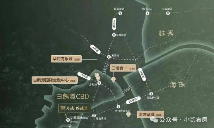 自带建面约60万方商业综合体规划,距离茶窖市场近,周边大部分都是做茶叶和批发的生意,建材和五金等,谈不上繁华。我们有朋友以前也在芳村待过两年,对于这边村子还是比较多的,芳村地铁口附近的有个肉菜市场,东西还是非常便宜。在力诚榕诚湾项目400米左右有乐家生鲜,雅源小百货,春仔生活超市,基本能满足生活需求。