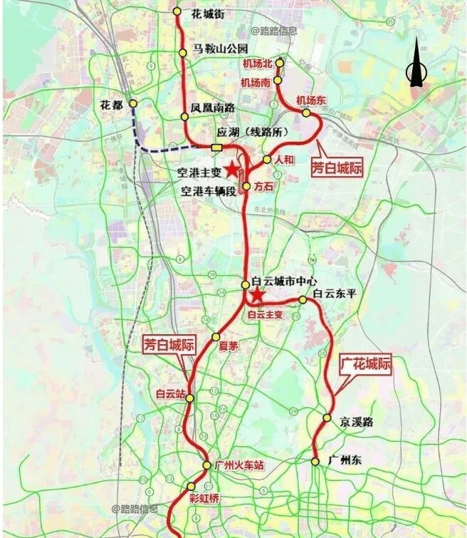 22号线建设中,二期完成68%,开通后可直达白云机场。