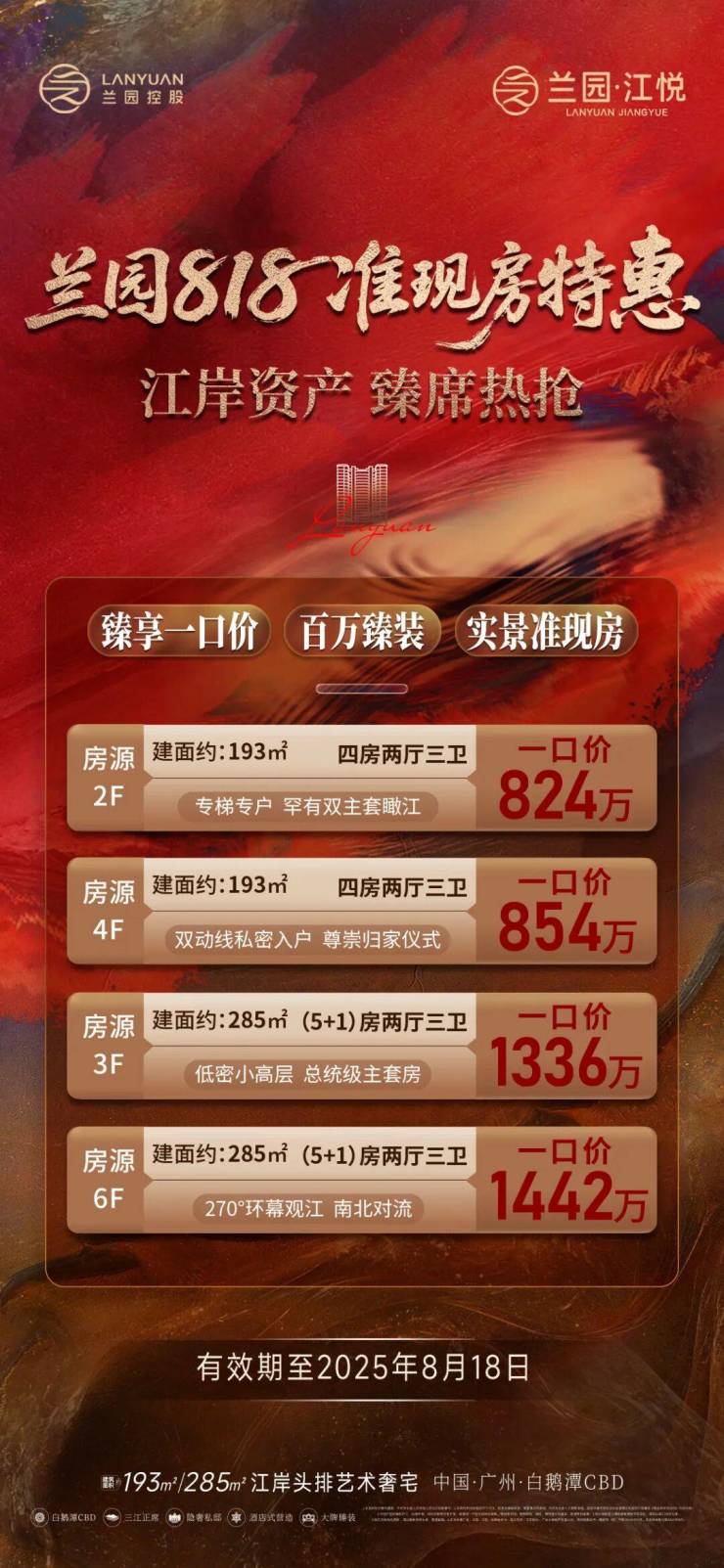 🌏 生活圆心:兰园・江悦的全能半径在兰园・江悦,滨江生态、重奢商圈、12年优教、立体交通,共同圈定生活的理想半径,让每一份对美好的向往,都照进日常。🌳 滨江绿带:家门口的自然人文剧场双桥公园的绿意、沙面岛的历史韵味,滨江公园的悠然、坦尾江边公园的闲适,洲头咀公园的诗意,下楼即享,把自然与人文,晕染成生活底色。