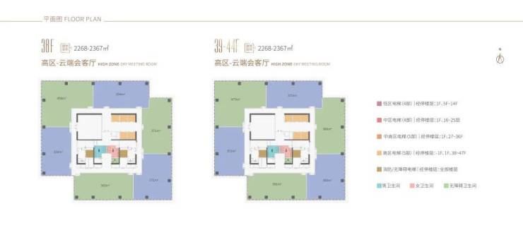 38-44F,是企业会客厅,约338-479㎡ 45-47F,约1427-1596㎡(整层)