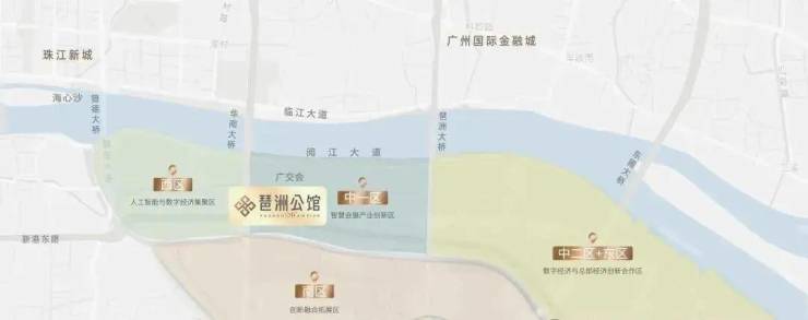 琶洲与珠江新城、金融城形成广州CBD黄金三角,琶洲定位为国家级人工智能与数字经济试验区、省级经济开发区、市级总部经济集聚区等创新平台称号,是广东省谨此一个在市中芯经开区,将打造“数字+会展+总部”融合创新的产业新高地。