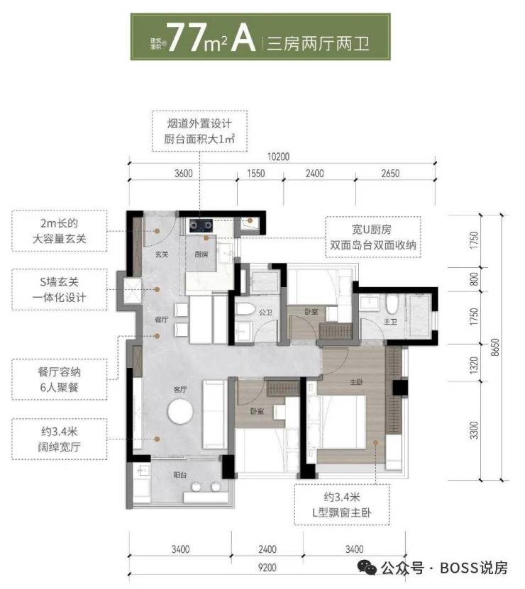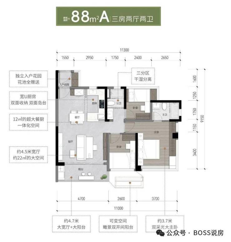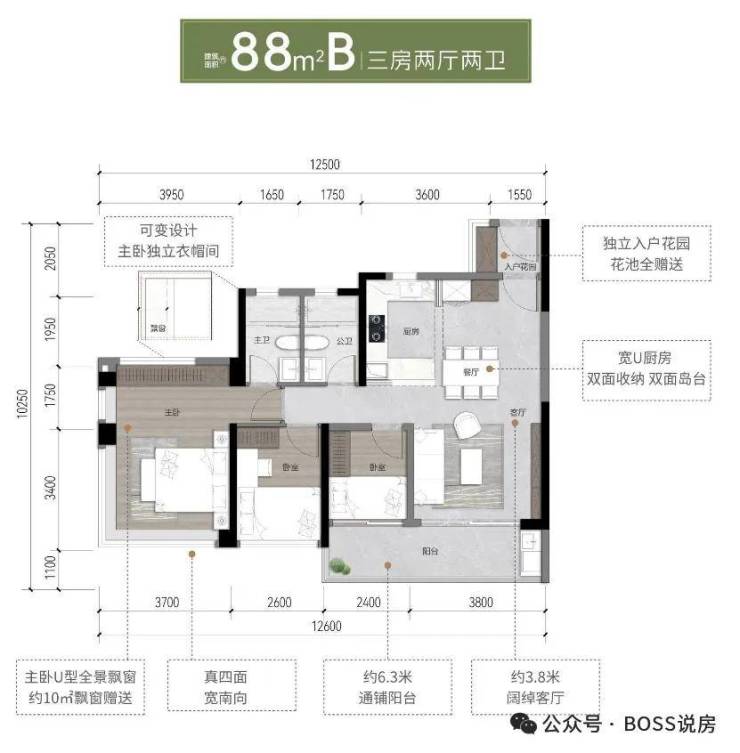 88㎡户型:7米超长阳台+12㎡餐厨一体化,满足家庭欢聚场景