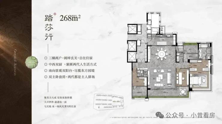 我们再来看看此次加推的268平的大面积户型,作为项目的旗舰,暗藏着哪些巧妙的设计?
