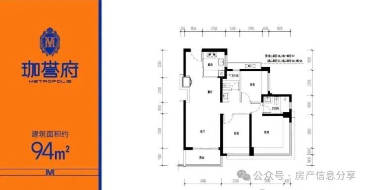| 约94㎡(竖厅)三房两厅两卫【总价约435-512万】